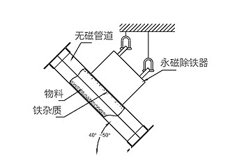 适合没有输送皮带,只能提供下料溜槽的场合。当散状物料经过时,铁杂物被高磁场的永磁铁吸附,清除铁杂质时,打开管道专用门将杂质人工取除。该设备适用于含铁量较少的场合,主要应用于水泥、化工、煤炭、塑料、耐火材料、建材等行业的下料管道中清除杂质。