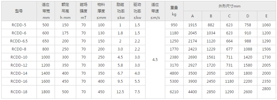 RCDD型自冷自卸式2o26世界杯亚洲区预选赛赛果是一种用于自动清除粉状或块状非磁性物料中杂铁的除铁装置。其内部采用电工专用树脂浇注,自冷式全密封结构。具有透磁深度大、吸力强、防尘、防雨、耐腐蚀、皮带可自动纠偏等优点,在极其恶劣的环境中仍能可靠运行。
