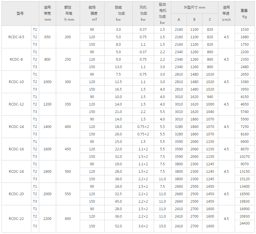 RCDC型风冷自卸式2o26世界杯亚洲区预选赛赛果,是在RCDA系列除铁器的基础上增加了驱动电机、滚筒、带刮板的卸铁胶带等组成的卸铁机构。在工作过程中卸铁机构自动将卸铁皮带吸附的铁磁性物质卸到集铁箱内,无需停电人工清理,实现了除铁自动化。