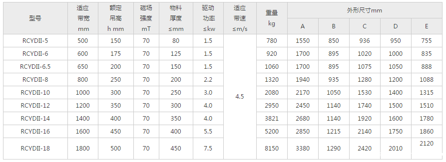 进料粒度:可清除0.1-35kg的铁磁性物质。
